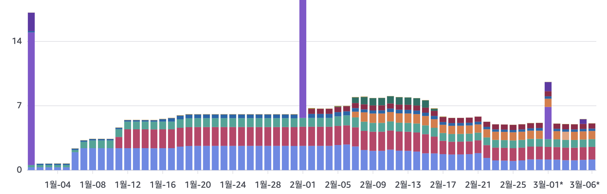 Also, our old t2.micro NAT instances were enough for our traffic. Our services are only for Soongsil University students, so our network traffic is not very high. As you can see in the image below, usage is low even with a t2.micro instance. So I combined all NAT instances into one t4g.micro instance.
